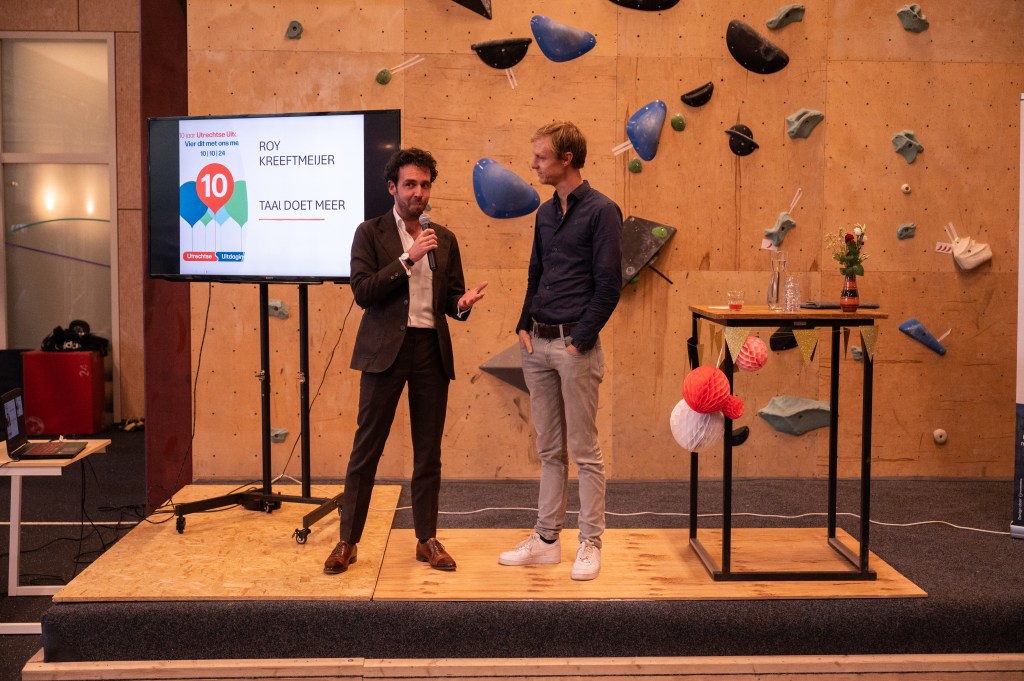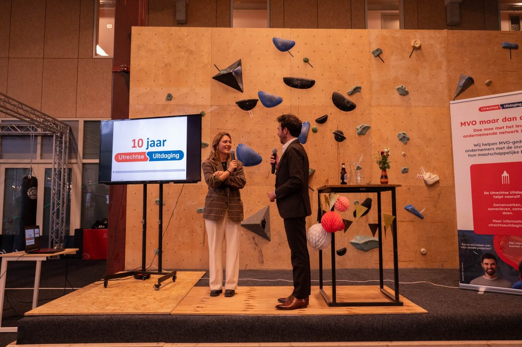 Op 10 oktober 2024 vierde het meest inspirerende netwerk van ondernemend Utrecht een mijlpaal: 10 jaar maatschappelijke impact! Meer dan 75 betrokken ondernemers kwamen samen in Utrecht Overvecht om het 10-jarig jubileum van de Utrechtse Uitdaging te vieren. De bijeenkomst bood maatschappelijke organisaties de kans om hun projecten te presenteren, terwijl Wethouder Eva Oosters in gesprek ging met voorzitter Martijn van Boetzelaer over het belang van sociaal ondernemerschap en de actuele maatschappelijke uitdagingen in Utrecht, zoals armoede, diversiteit en eenzaamheid. Dankzij Younity, die hun locatie belangeloos beschikbaar stelde, vond het evenement plaats op een bijzondere plek in Utrecht-Overvecht.